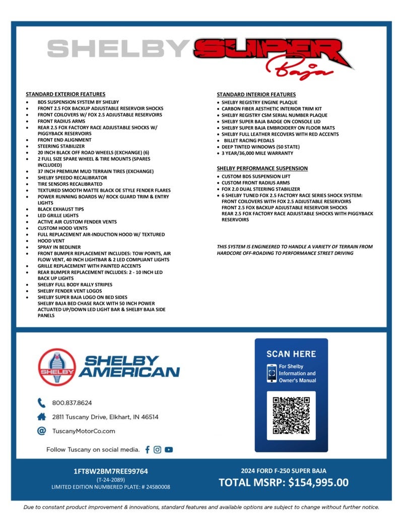 • SHELBY SUPER BAJA BADGE ON CONSOLE LID