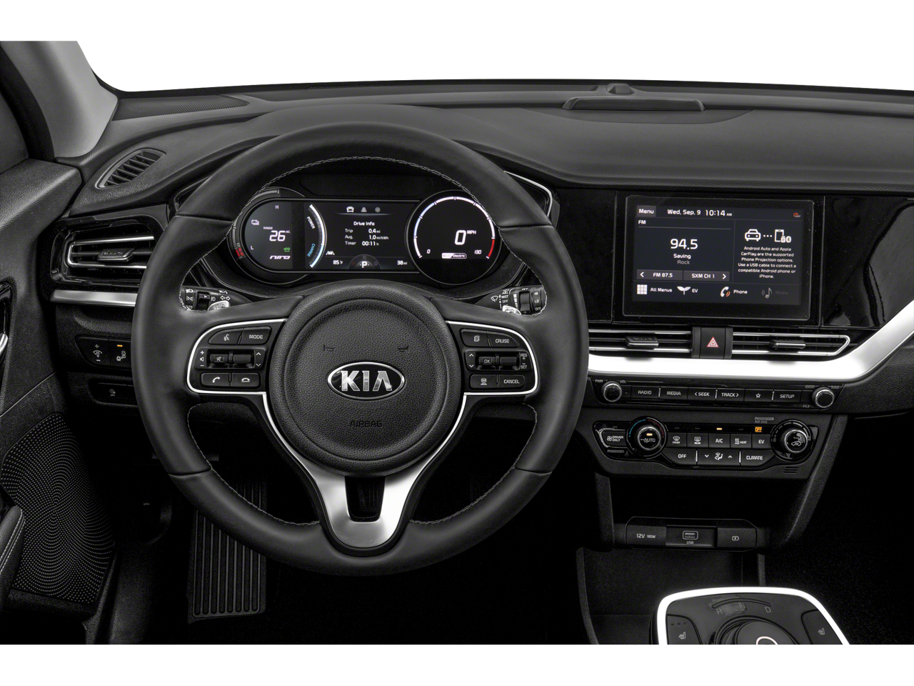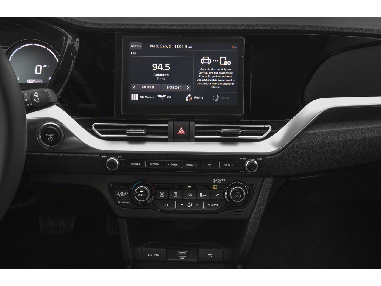 - Radio: AM/FM/SiriusXM -inc: display audio 2.0V (w/modem/SXM/HD radio), 8" touchscreen color display w/rear view monitor, UVO link, wireless Android Auto and Apple CarPlay, 6-speaker audio system w/USB input, Bluetooth wireless connectivity w/voice recognition and satellite radio w/3-month subscription